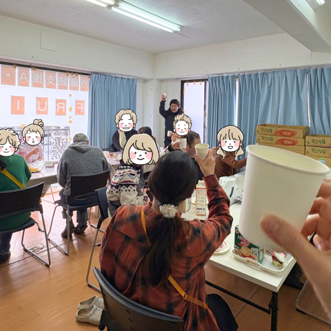 今回は外出ではなく、事業所の中でゆったりとした雰囲気の中、お菓子やジュースを囲みながらみんなで楽しく過ごしました✨